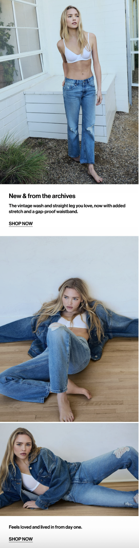 My role: I’m helping steer the brand’s new tone of voice while writing campaign narratives, product launches, emails, web copy, and in-store moments. (In cute jeans!)