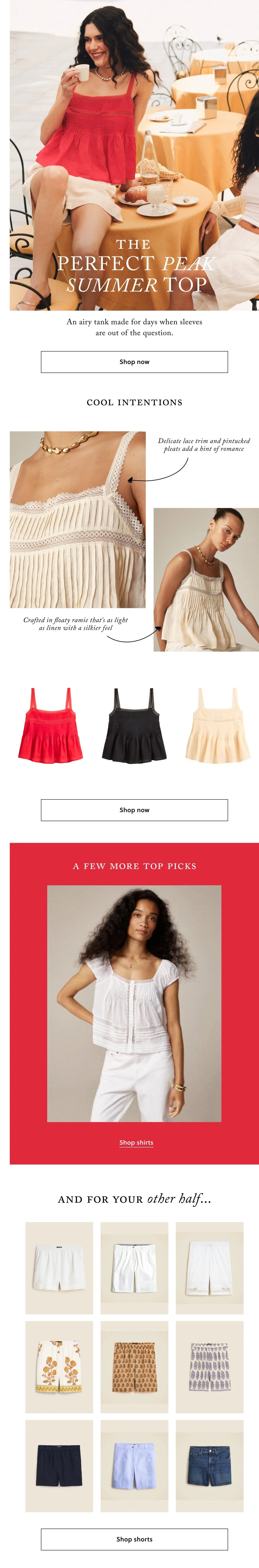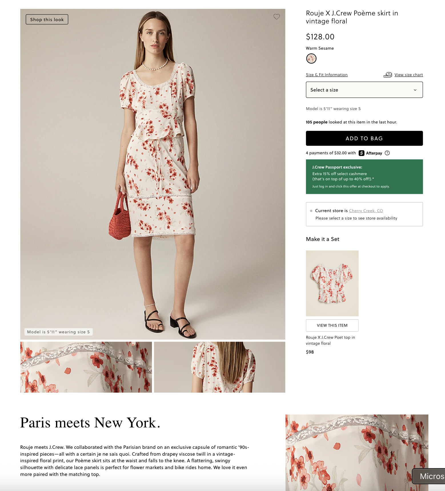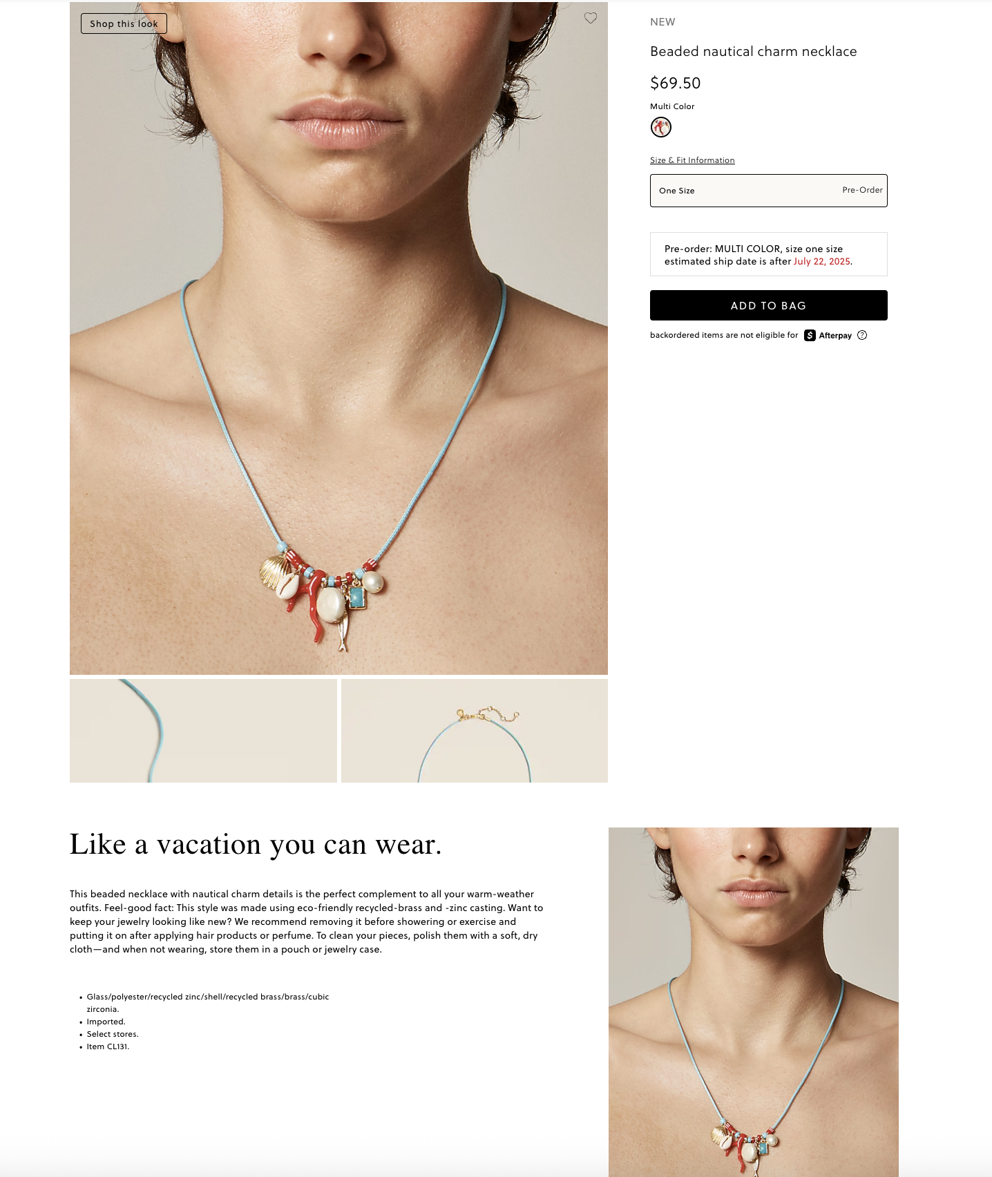 My role: I help shape how each season sounds — making sure everything from a new dress drop to a full summer campaign feels cohesive, thoughtful, and unmistakably J.Crew. I’ve been their part-time copywriter since March ‘25, working across their women’s and men’s collections on new product names and descriptions, in-store signage, plus SMS and email campaigns you (hopefully) open.